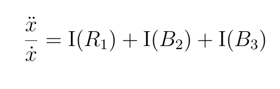 The impact equation gives the relative acceleration of the stock, the ratio of acceleration to rate of change. The same acceleration when the rate of change has more impact of stock behaviour give a larger percentage acceleration, or percentage force. The RHS of equation 7, the loop impacts, gives the different loop contributions to the relative acceleration of .